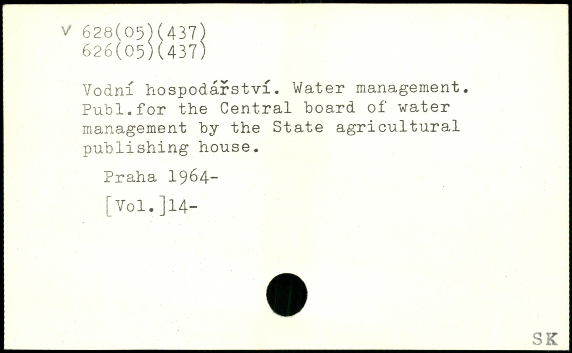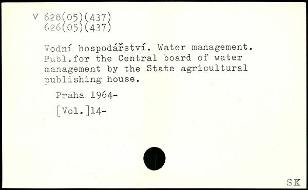 Vodni hospodarstvi. Water management. Publ.for the Central hoard of water management by the State agricultural publishing house.