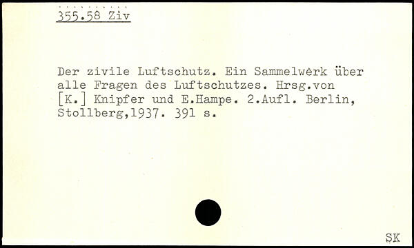 Der zivile Luftschutz. Ein Sammelwerk über alle Fragen des Luftschutzes. Hrsg.von [K.] Knipfer und E.Hampe.