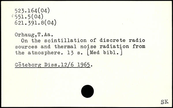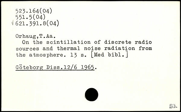 OrhaugjT.Aa. On the scintillation of discrete radio sources and thermal noise radiation from the atmosphere.