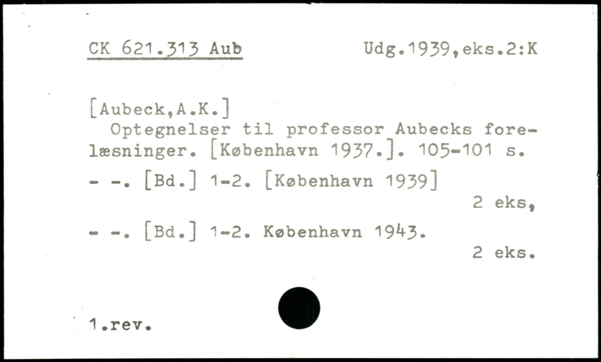 Optegnelser til professor Aubecks forelæsninger.