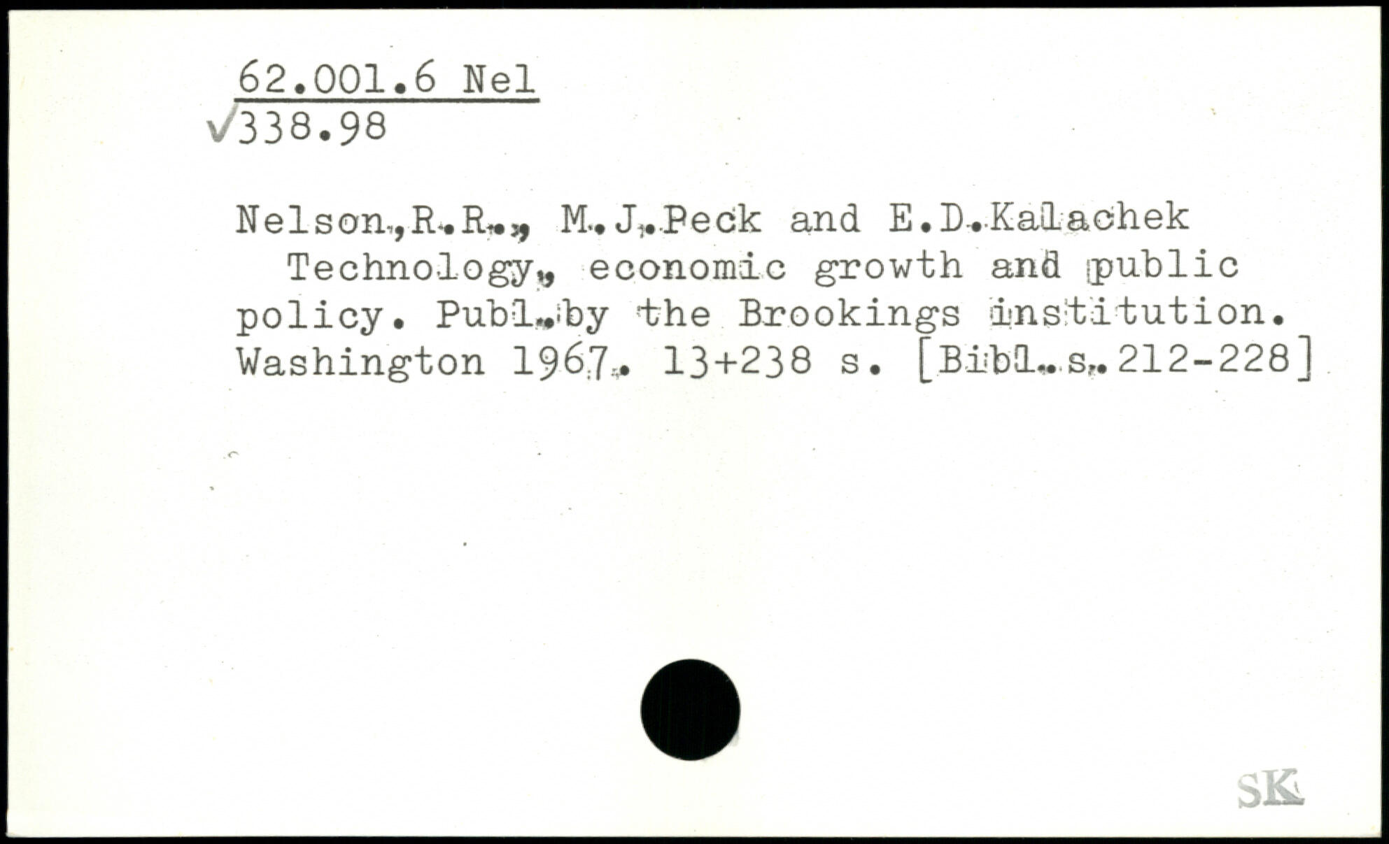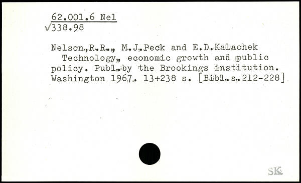 Nelson-,,R,fU,, M.. J,Peck and E.D^-Kalachek Technology,, economic growth and [public policy. Publ^iby the Brookings institution.