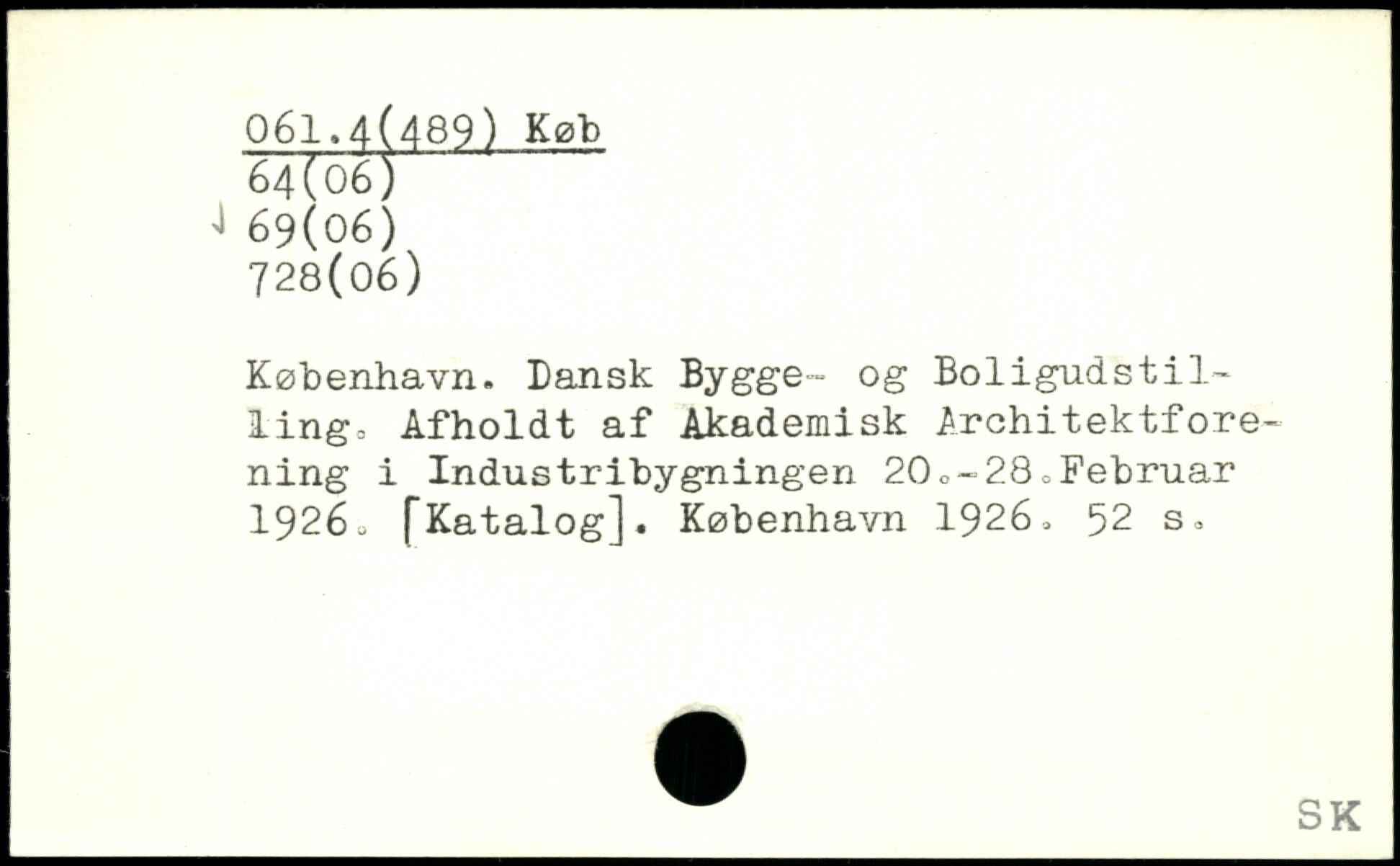København. Dansk Bygge™ og Boligudst1111ng, Afholdt af Akademisk Arohitektfore-ning i Industribygningen 20c~28=Februar 1926- [Katalog].