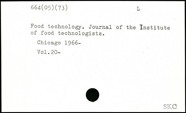 Pood technology. Journal of the Institute of food technologists.