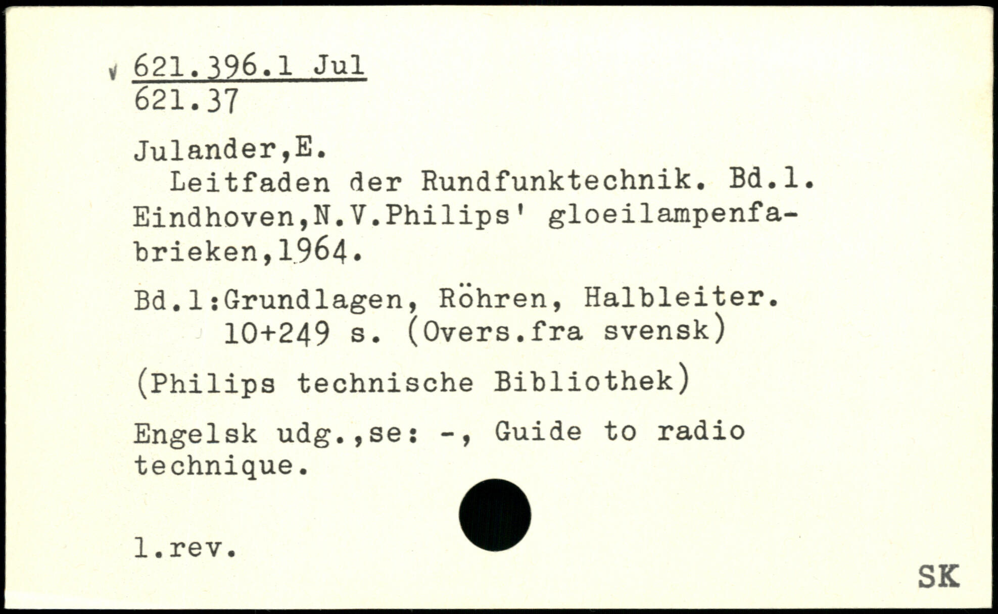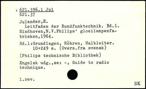 Leitfaden der Rundfunktechnik. Bd.l. Eindhoven,N.V.Philips’ gloeilampenfa- brieken,1964.