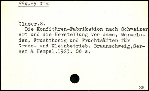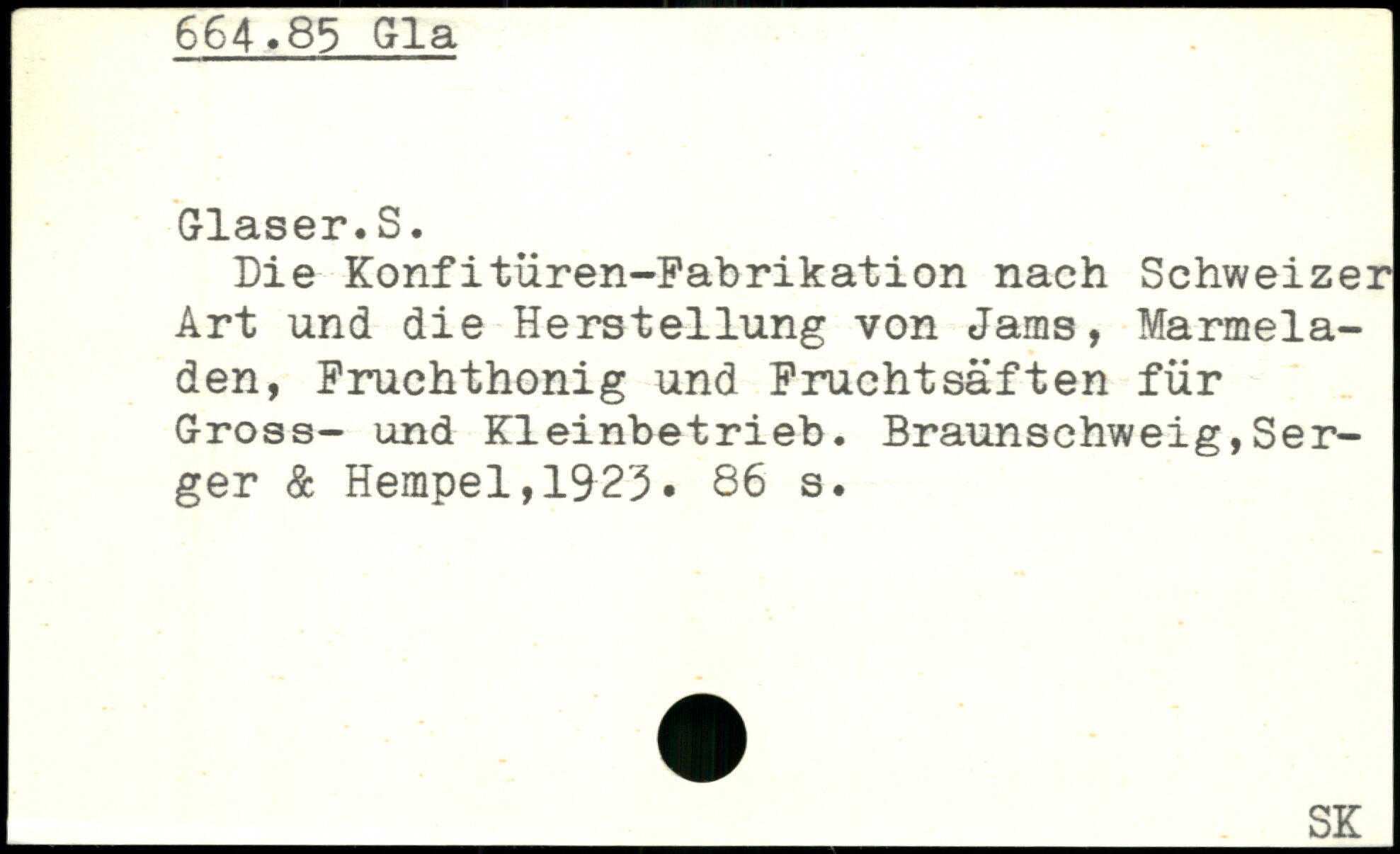 Die Konfitüren-Fabrikation nach Schweizer Art und die Herstellung von Jams, Marmeladen, Fruchthonig und Fruchtsäften für Gross- und Kleinbetrieb. Braunschweig,Ser-ger & Hempel,192%