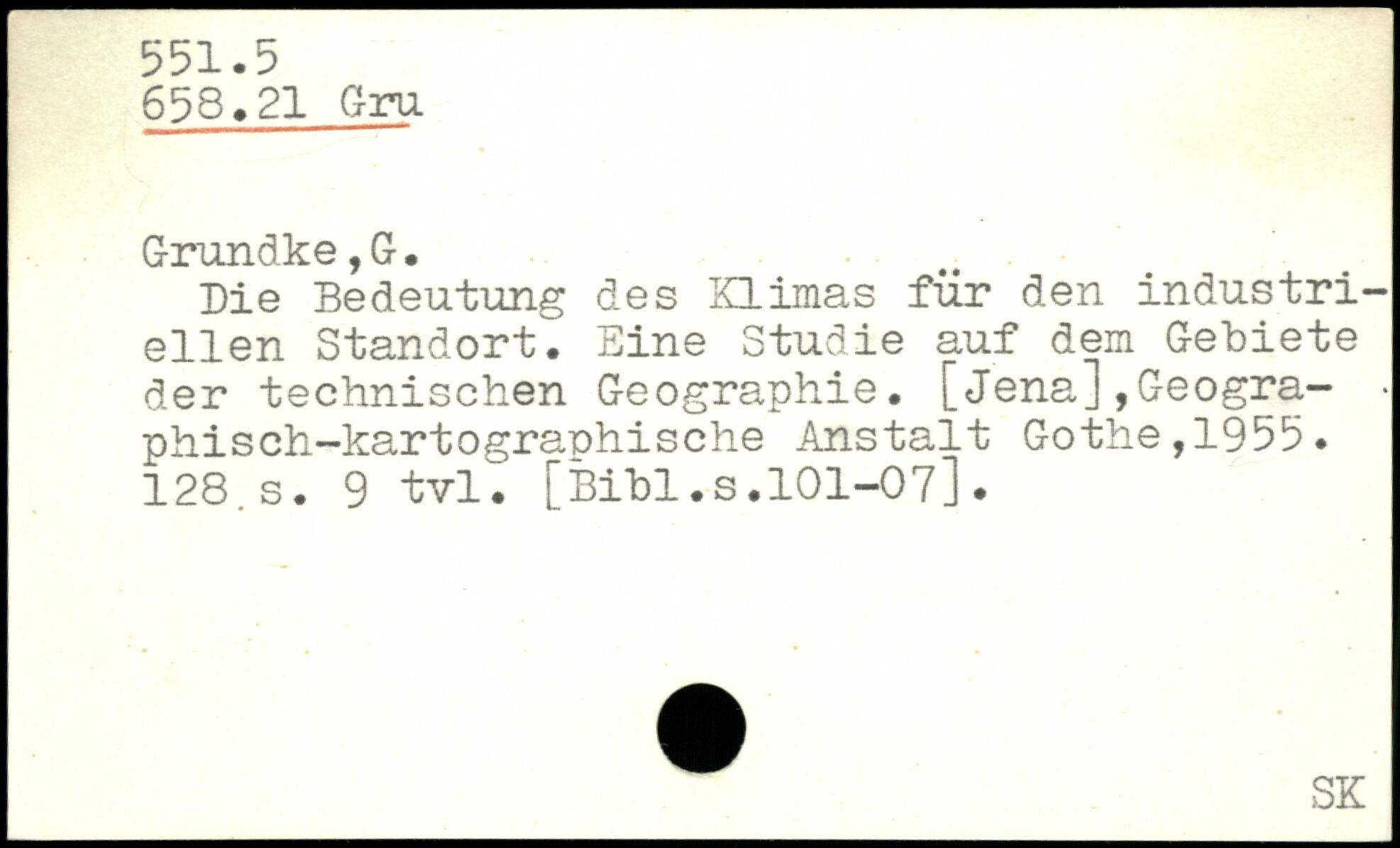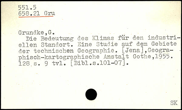 Die Bedeutung des Klimas für den industriellen Standort. Eine Studie auf dem Gebiete der technischen Geographie. [Jena],Geogra-. phisch-kartographische Anstalt Gothe,1955. 128.s. 9 tvl.