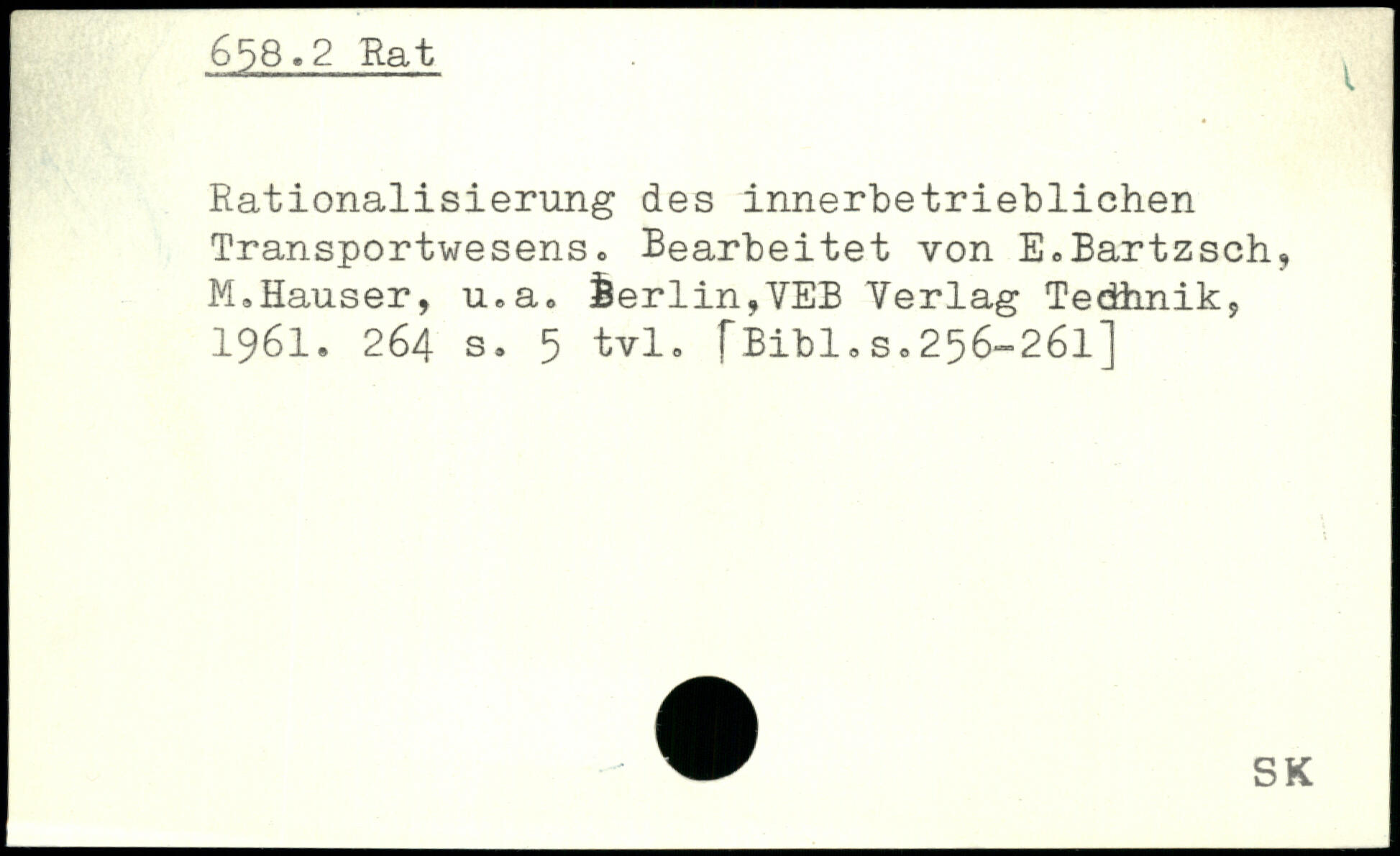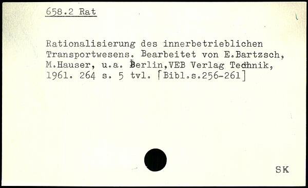 Rationalisierung des innerbetrieblichen Transportwesens. Bearbeitet von E,Bartzsch, M.Hauser, u.a.