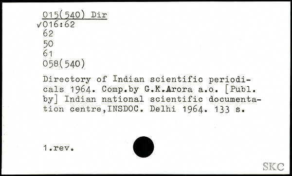 UDK: 015(540) Dir, 016, 62, 62, 50, 61, 058(540)
