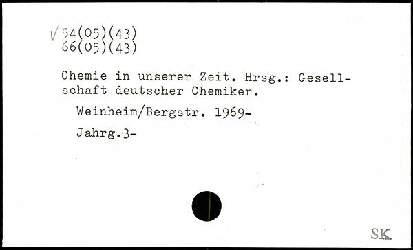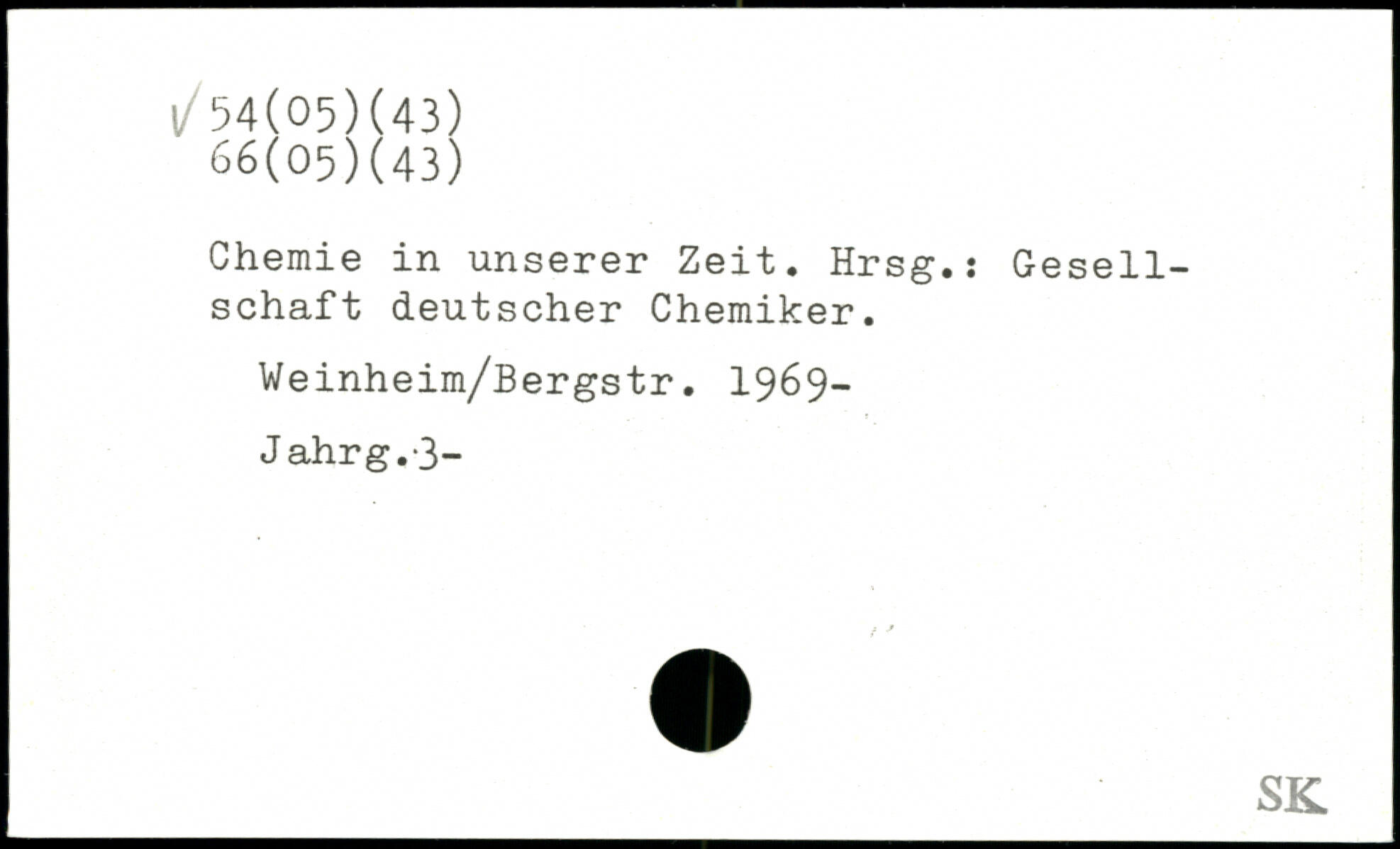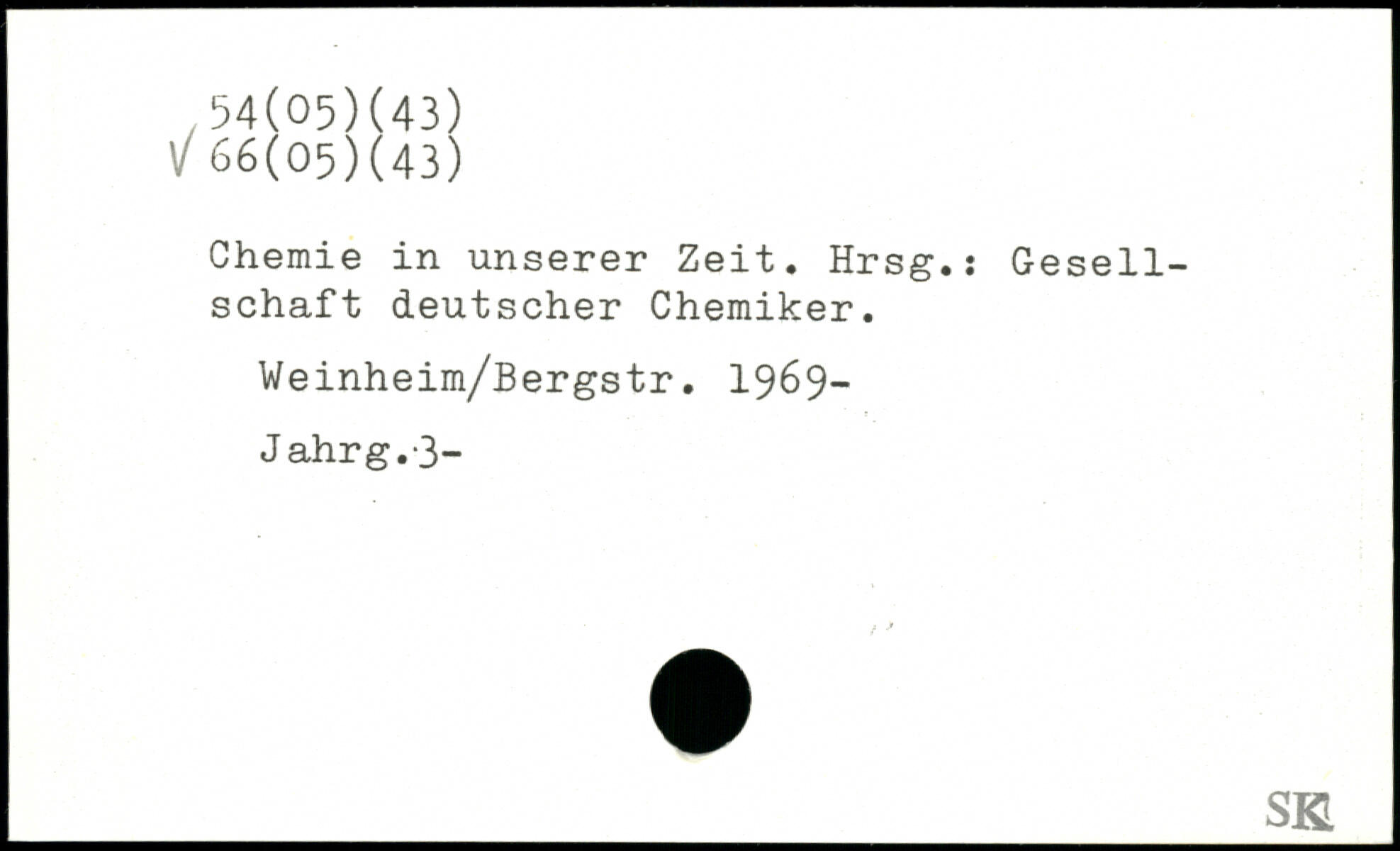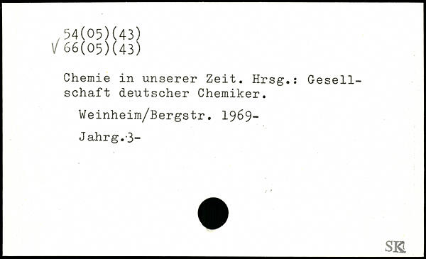 Chemie in unserer Zeit. Hrsg.: Gesellschaft deutscher Chemiker. Weinheim/Bergstr. 1969- J ahrg.-3- 0