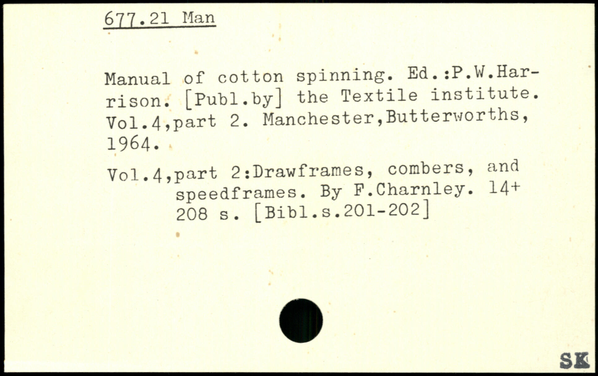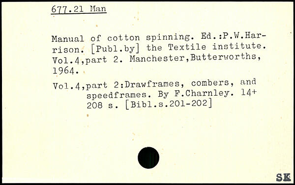 Manual of cotton spinning. Ed.:P.W.Harrison.