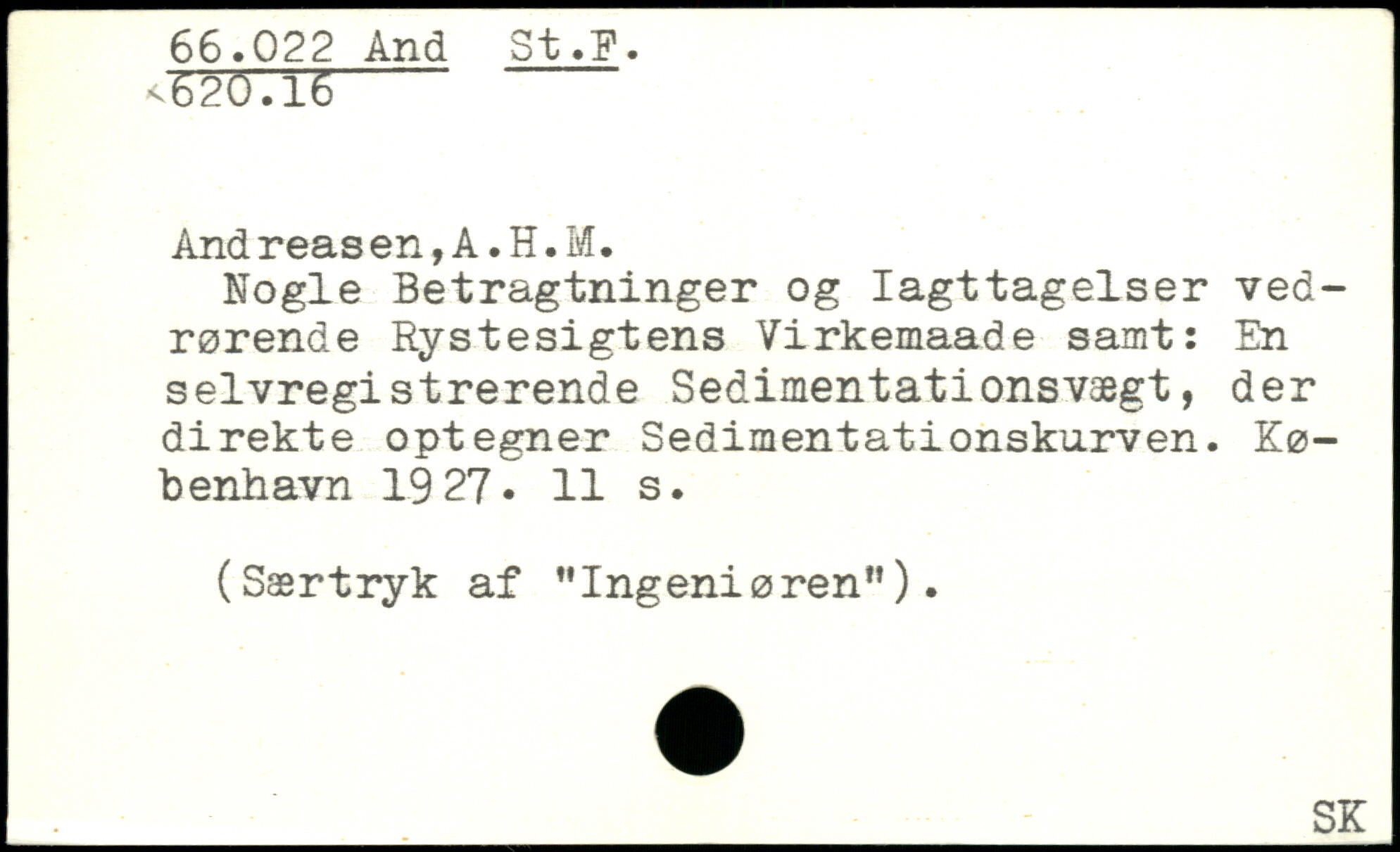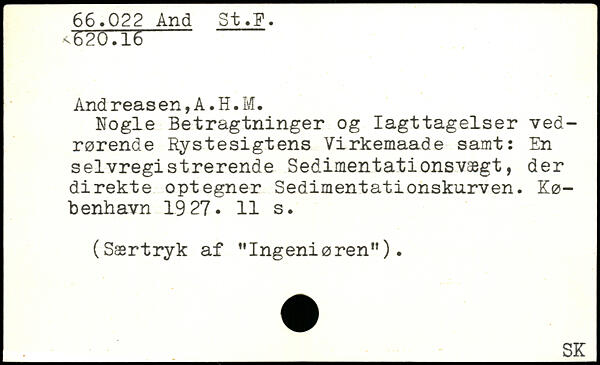 And reas en, A. H. M. Nogle Betragtninger og Iagttagelser vedrørende Rystesigtens Virkemaade samt: En selvregistrerende Sedimentationsvægt, der direkte optegner Sedimentationskurven. København 19 27.