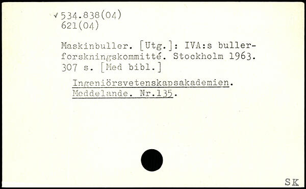 Maskinbuller. [Utg.]: IVA:s bullerfor skningskommi t té.