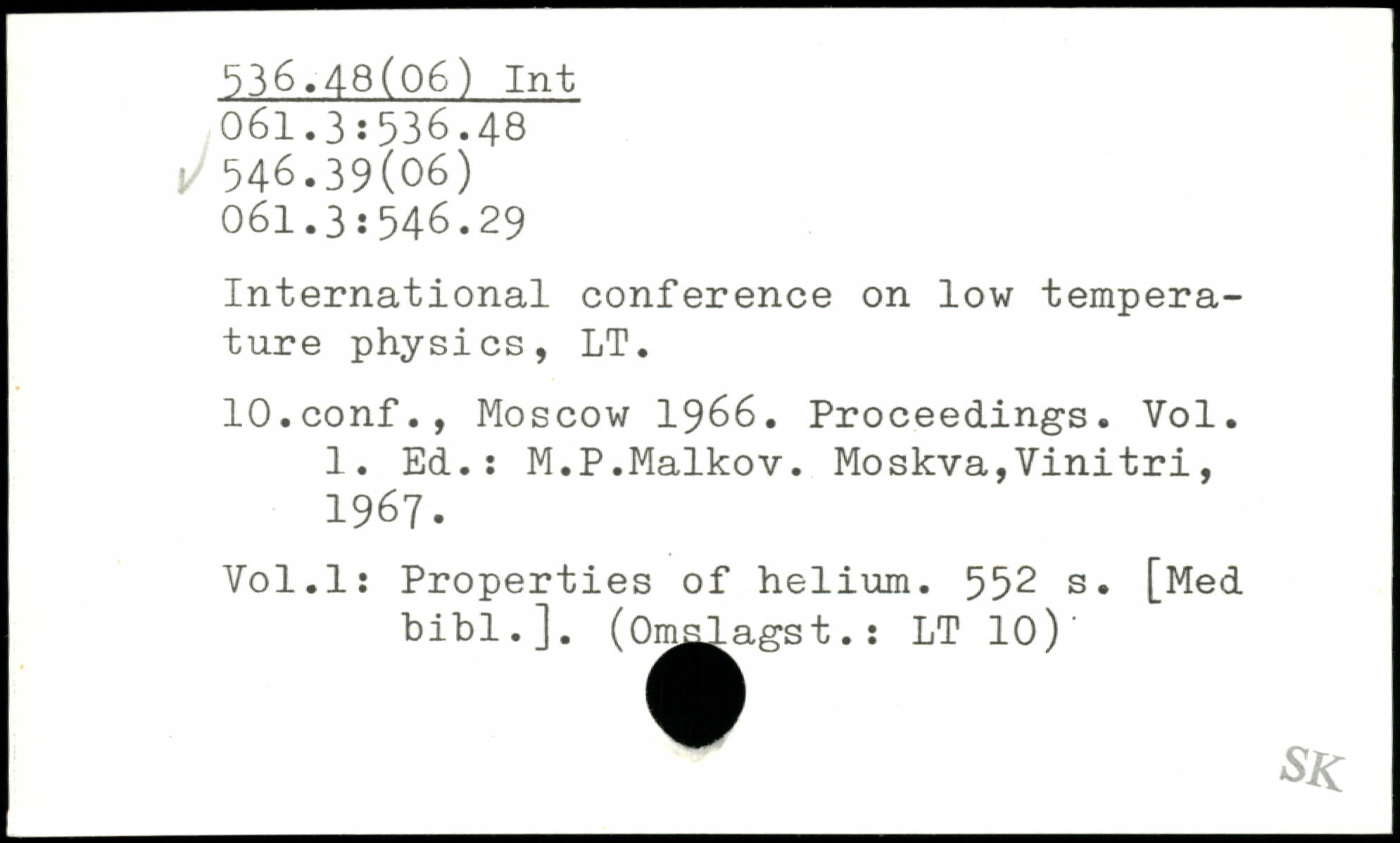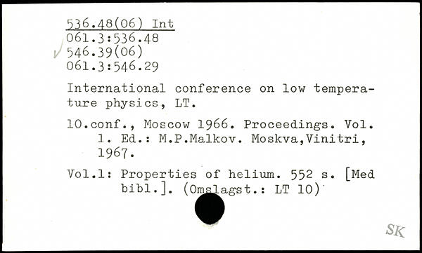 International conference on low temperature physics, LT. lO.conf., Moscow 1966. Proceedings. Vol. 1. Ed.: M.P.Maikov.
