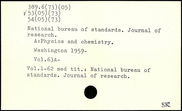 National bureau of standards. Journal of research. A:Physics and chemistry.