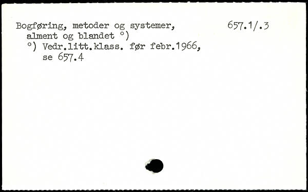 Bogføring, metoder og systemer, 657.1/.3 alment og "blandet .) .) Vedr.litt.klass. før febr.1966, se 657.4