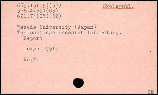 Waseda University (Japan) The castings research laboratory. Report