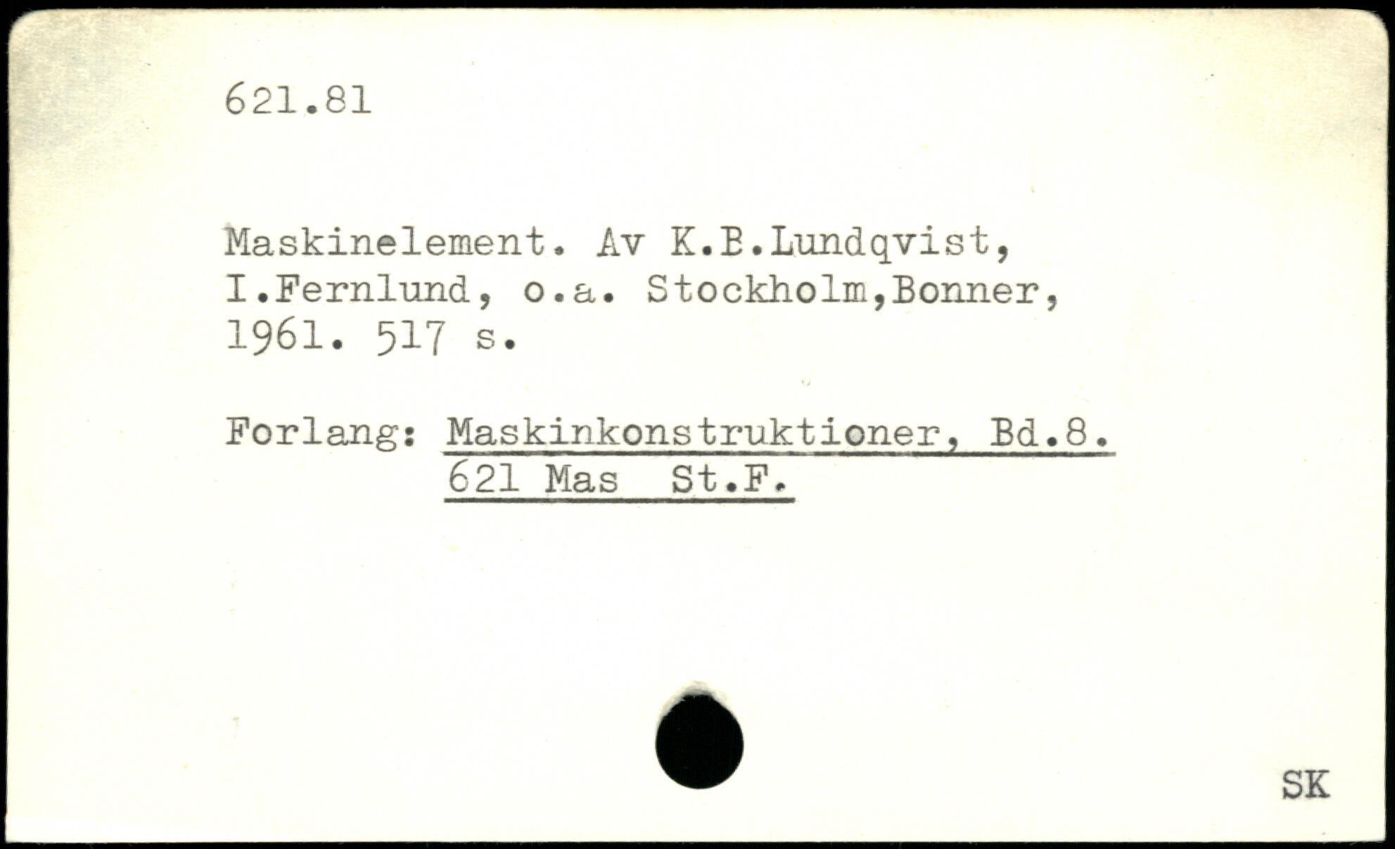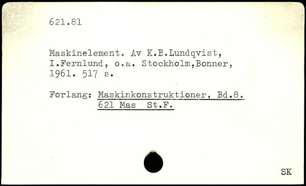 Maskinelement. Av K.E.Lundqvist, I.Fernlund, o.a.