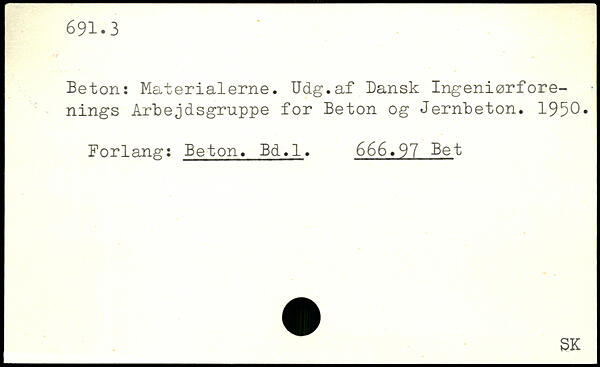Beton: Materialerne. Udg.af Dansk Ingeniørforenings Arbejdsgruppe for Beton og Jernbeton. 1950. Forlang: Beton, Bd.l. 666.97 Bet