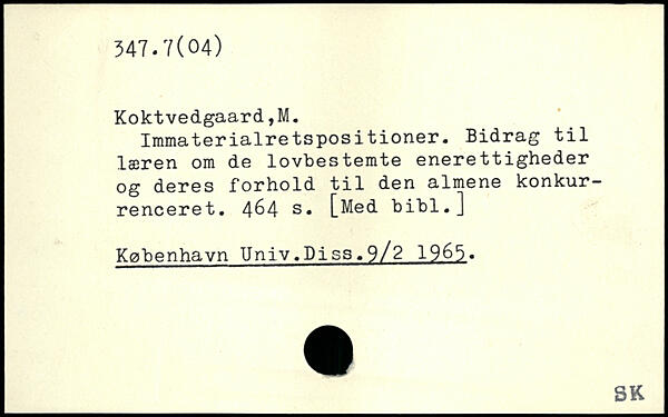Immaterialretsposi tioner. Bidrag til læren om de lovbestemte enerettigheder og deres forhold til den almene konkurrenceret.