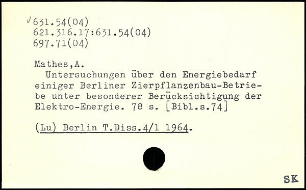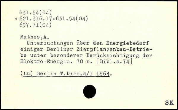 Untersuchungen über den Energiebedarf einiger Berliner Zierpflanzenbau-Betriebe unter besonderer Berücksichtigung der Elektro-Energie.