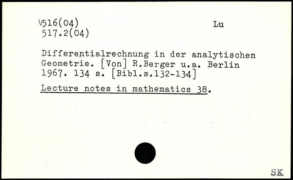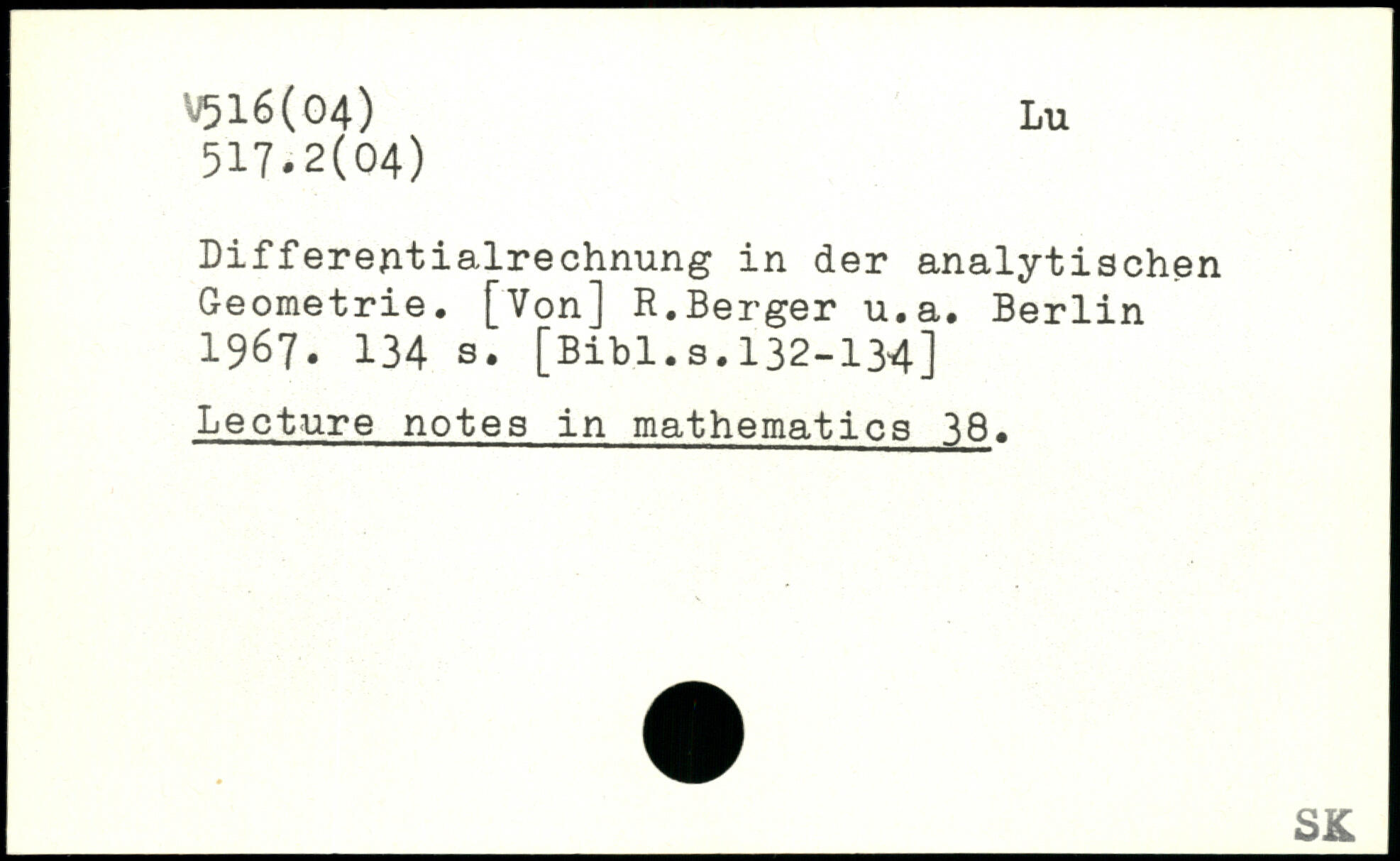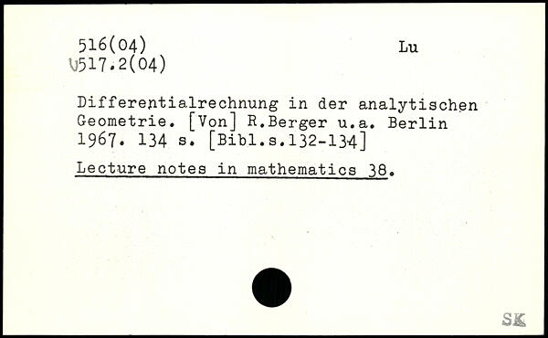 Differentialrechnung in der analytischen Geometrie. [Von] R.Berger u.a.
