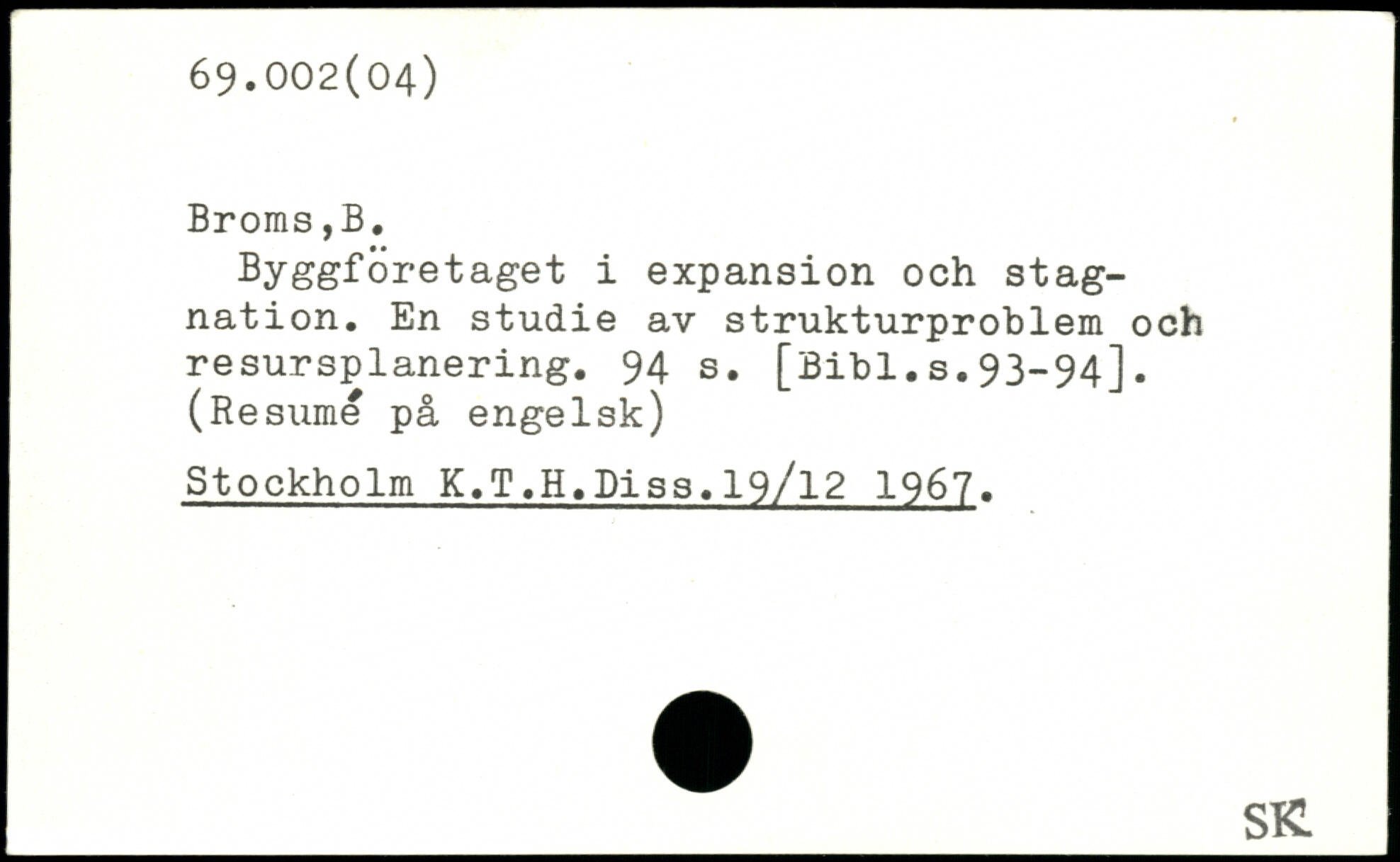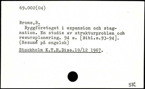 Byggföretaget i expansion och stagnation. En studie av strukturproblem och resursplanering.