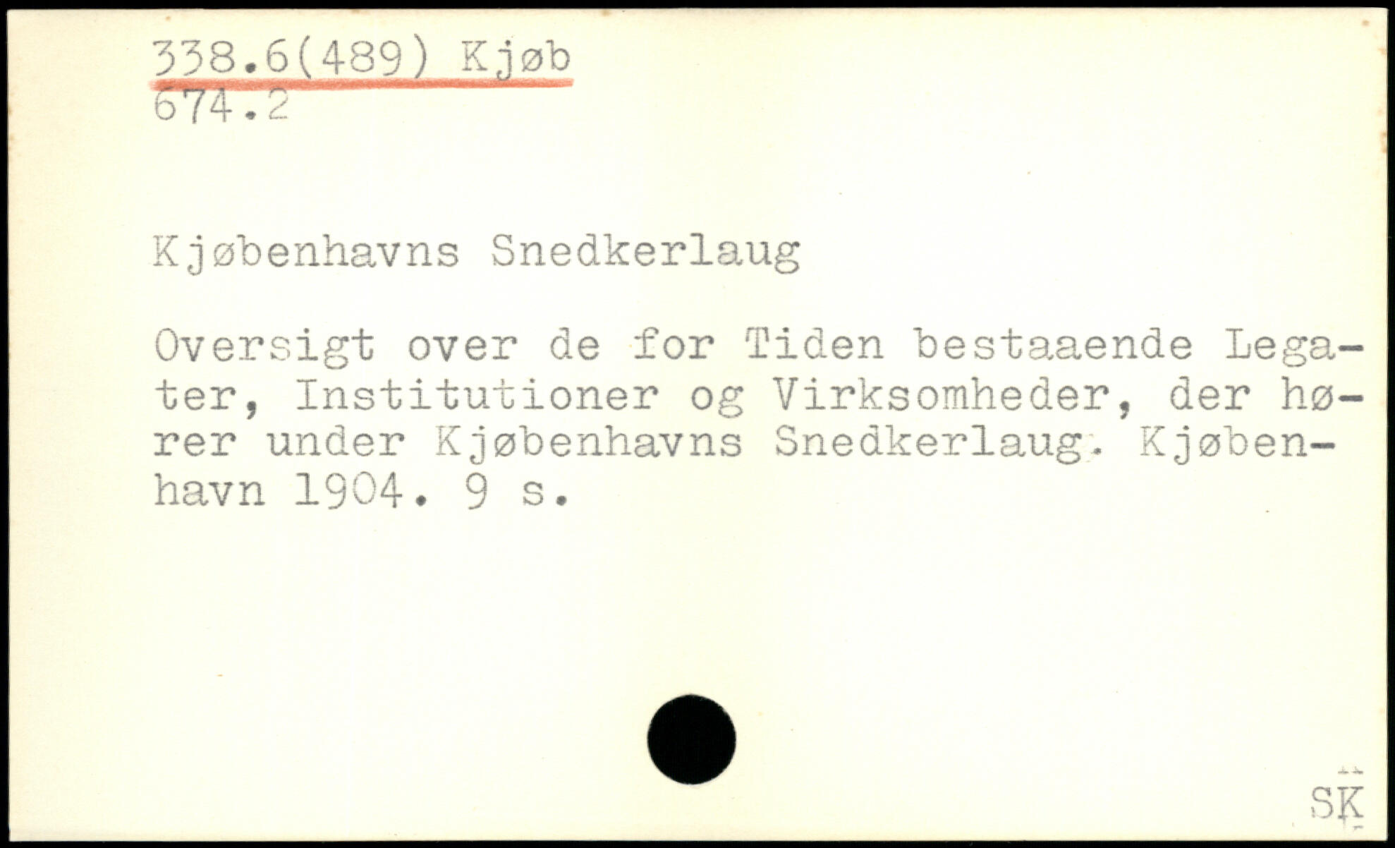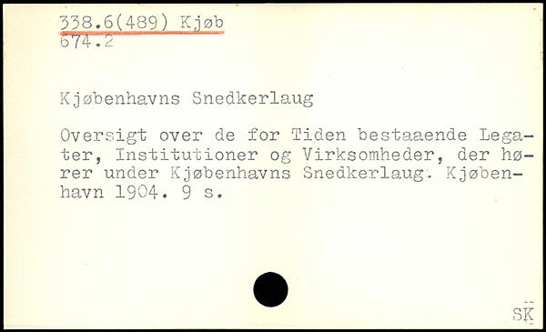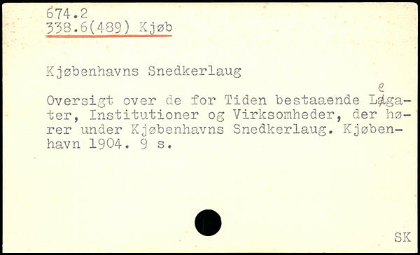 Kjøbenhavns Snedkerlaug Oversigt over de for 'Tiden bestaaende Legater, Institutioner og Virksomheder, der hører under Kjøbenhavns Snedkerlaug. Kjøben-havn 1904.