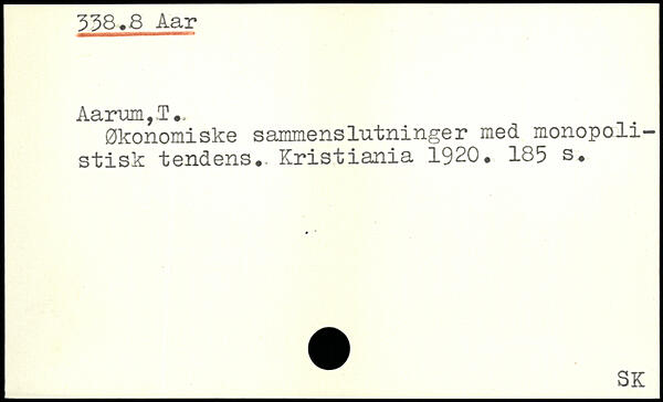 Økonomiske sammenslutninger med monopolistisk tendens.. Kristiania 1920.