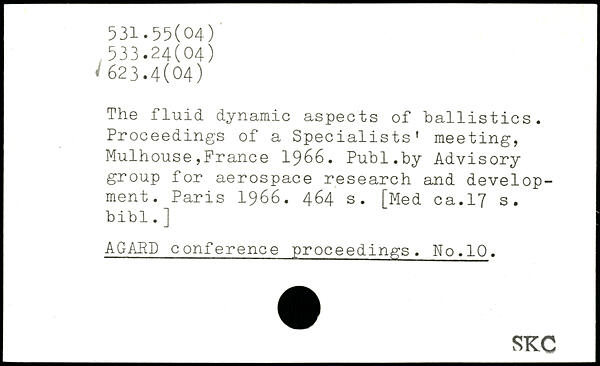 The fluid dynamic aspects of ballistics. Proceedings of a Specialists' meeting, Mulhouse,France 1966.