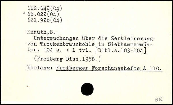 Untersuchungen über die Zerkleinerung von Trockenbraunkohle in Siebhammermühlen.