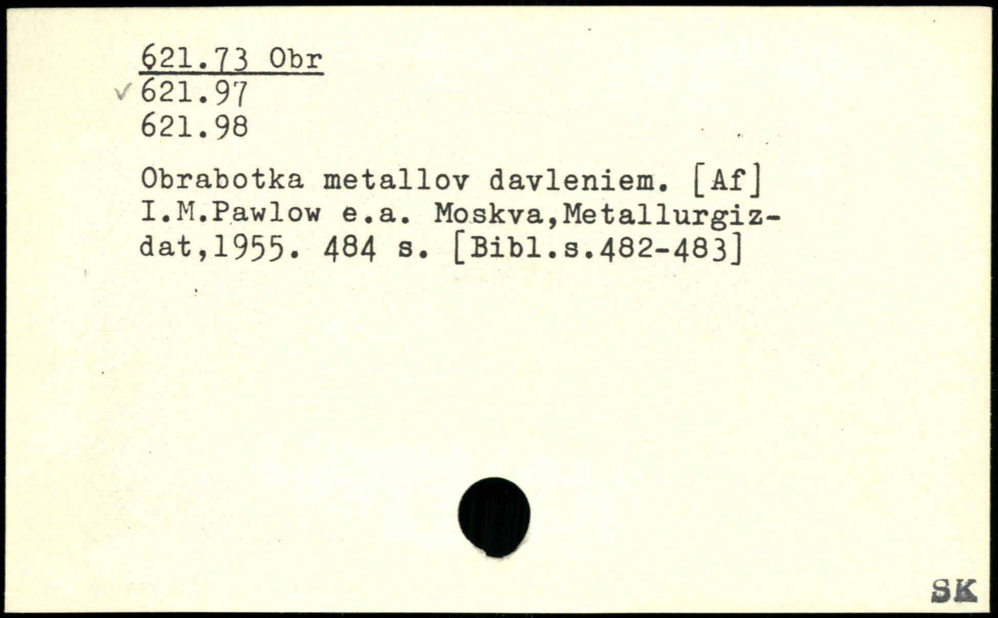Obrabotka metallov davleniem. [Af] I.M.Pawlow e.a.
