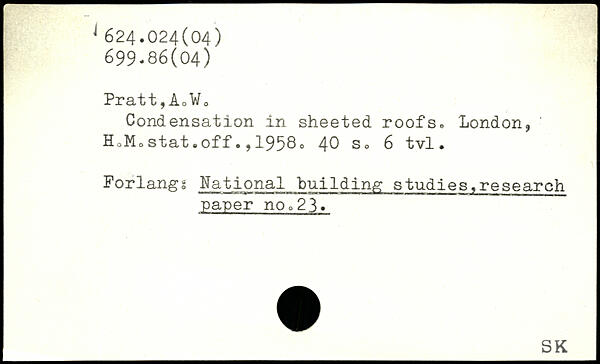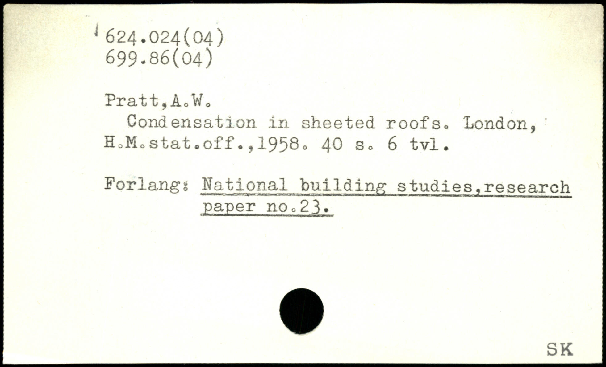 Condensation in sheeted roofs, London, ELM, stat .off.,1958o