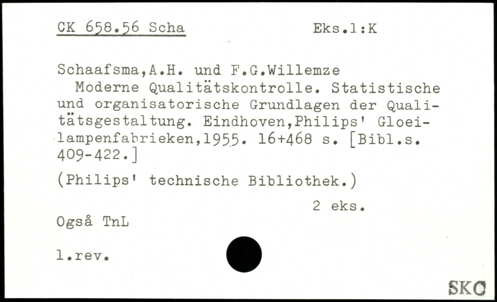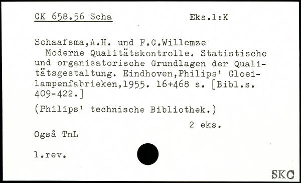 Moderne Qualitätskontrolle. Statistische und organisatorische Grundlagen der Quali-tätsges tal tung. Eindhoven,Philips’ Gloei-lampenfahrieken,1955.