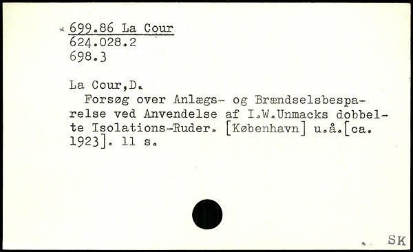 Forsøg over Anlægs- og BrændseIs'besparelse ved Anvendelse af I,W,Unmacks dobbelte Isolations-Ruder,, [København] u,å,[ca. 1923].