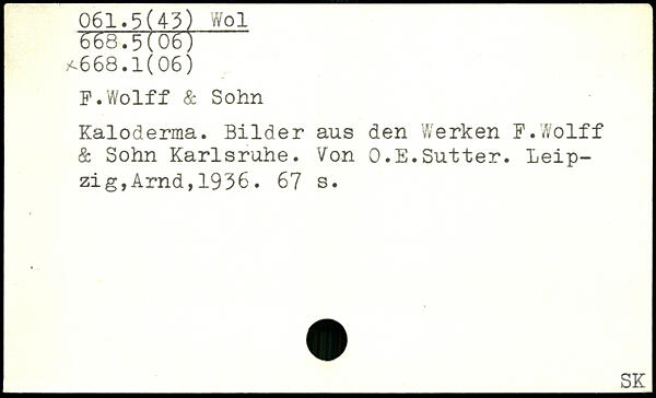 Kaloderma. Bilder aus den Werken F.Wolff & Sohn Karlsruhe. Von O.E.Sutter.