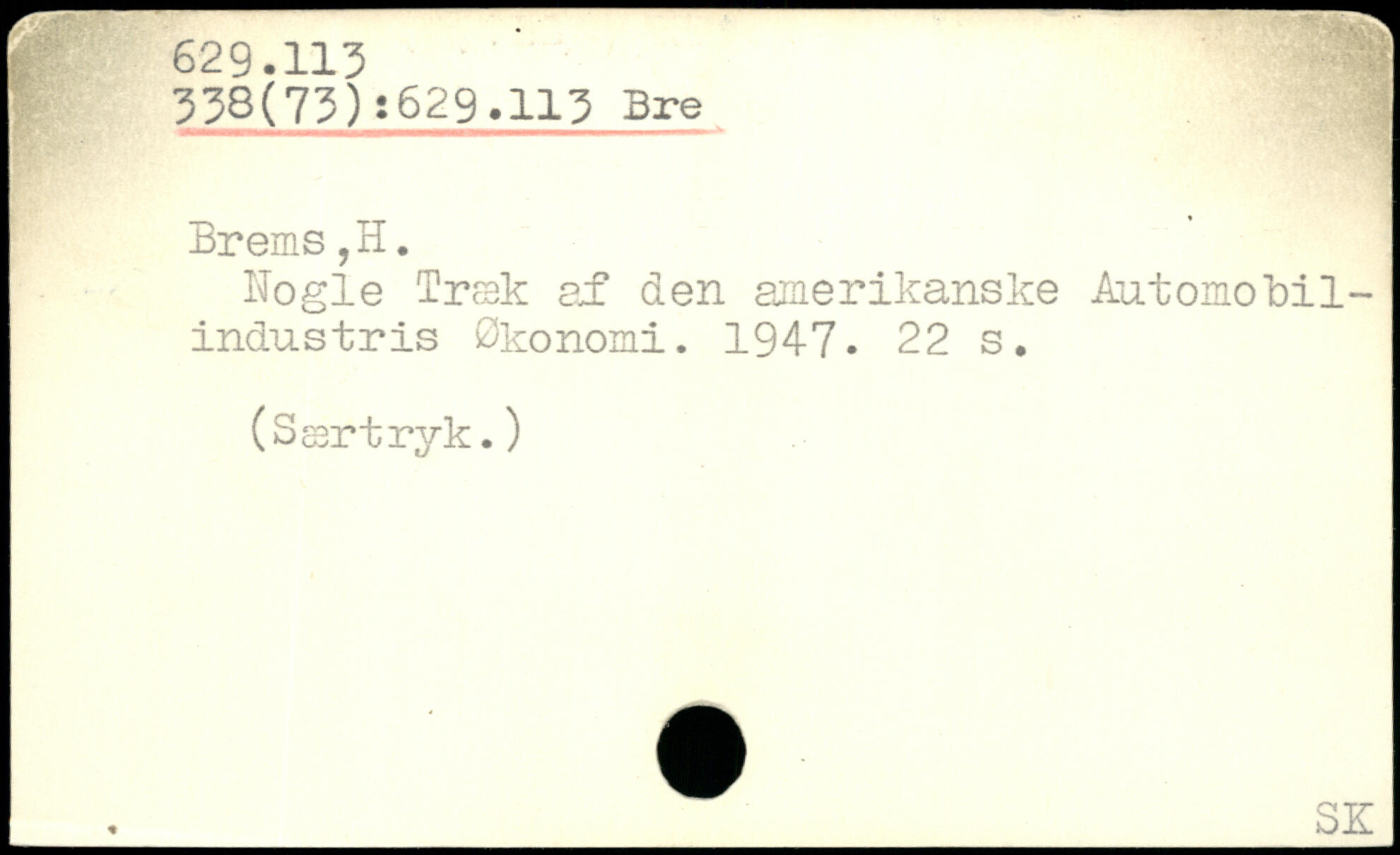 Bogie Træk af den amerikanske Automobil-industris Økonomi. 1947.