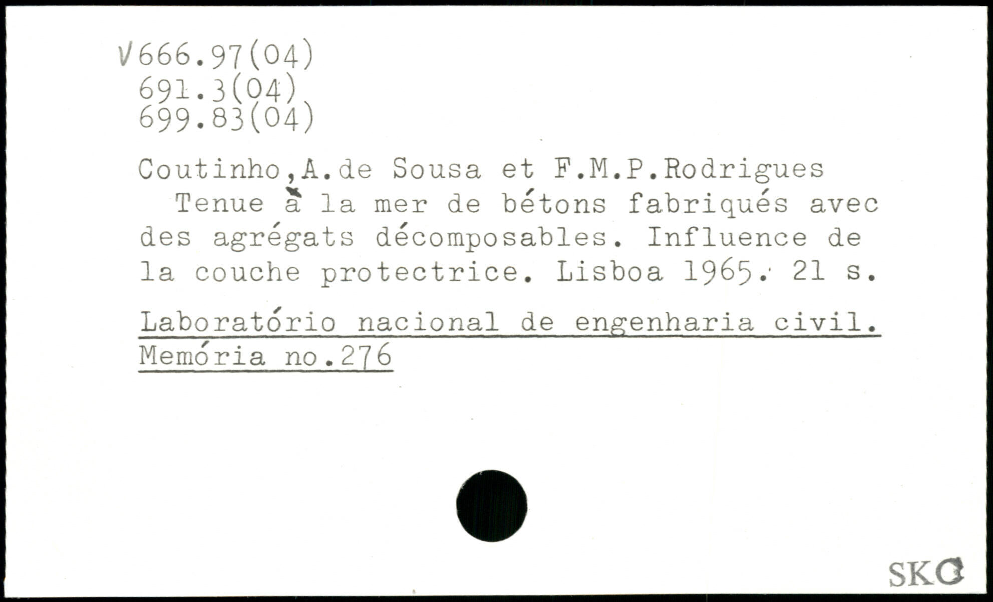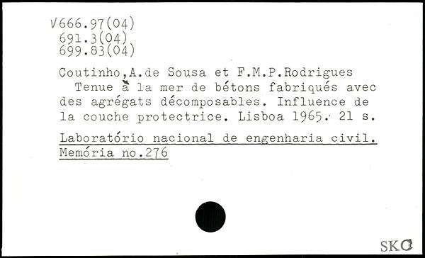 Coutinho,A.de Sousa et F.M.P.Rodrigues Tenue a la mer de bétons fabriqués avec des agrégats décomposables. Influence de la couche protectrice. Lisboa 19^5.