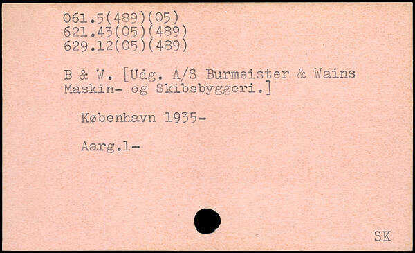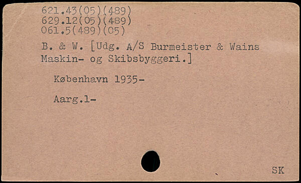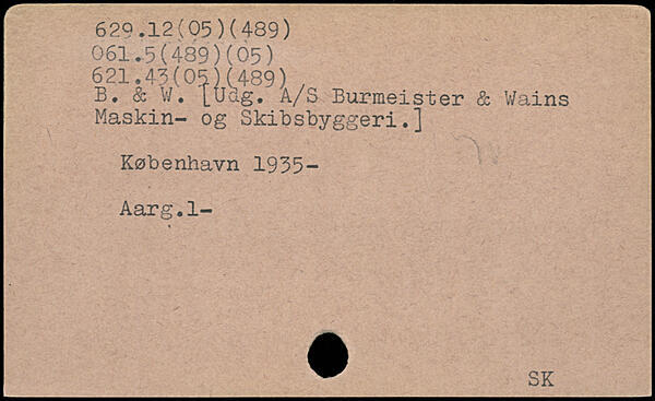 B, & W. LUdg. A/S Burmeister & Wains Maskin- og Skibsbyggeri.]