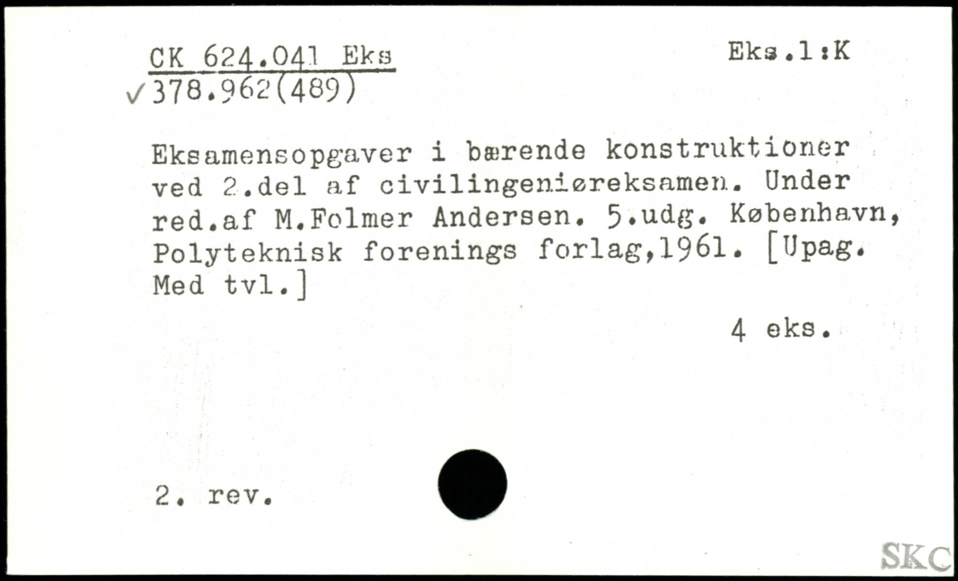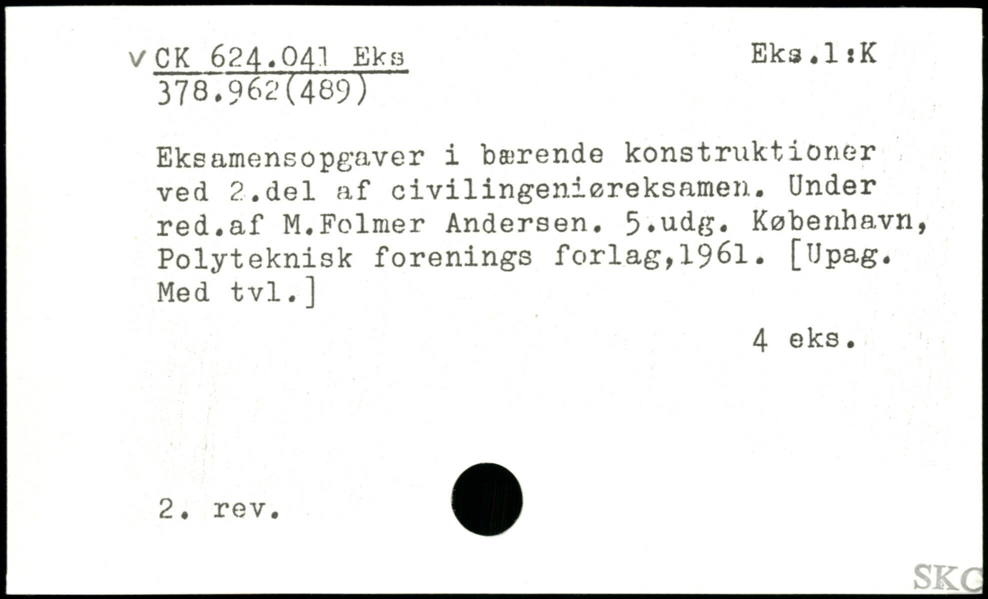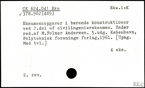 Eksamensopgaver i bmrende konstruktioner ved 2.del af civilingeniøreksamen. Under red.af M.Folmer Andersen. 5,udg.