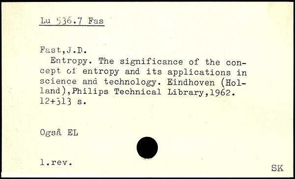Entropy. The significance of the concept of entropy and its applications in science and technology. Eindhoven (Holland ),Philips Technical Library,1962.