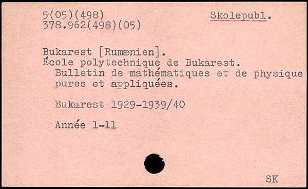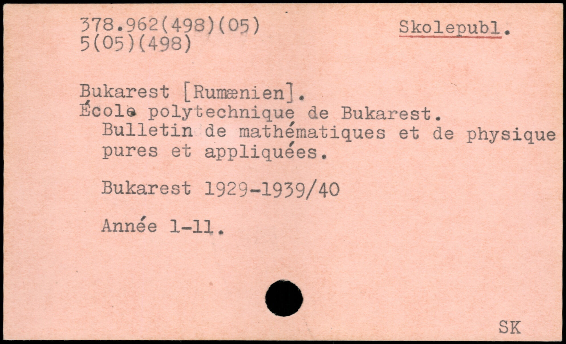 Bukarest [Rumænien]. École polytechnique de Bukarest. Bulletin de mathématiques et de physique pures et appliquées.