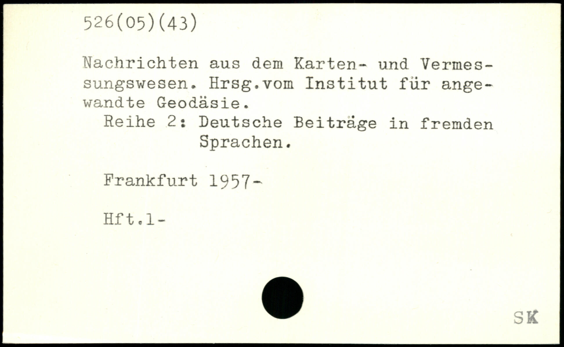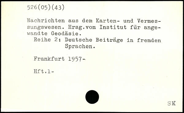 Nachrichten aus dem Karten- und Vermessungswesen. Hrsg.vom Institut für angewandte Geodäsie. Reihe 2: Deutsche Beiträge in fremden Sprachen. Frankfurt 1957- Hft.l-