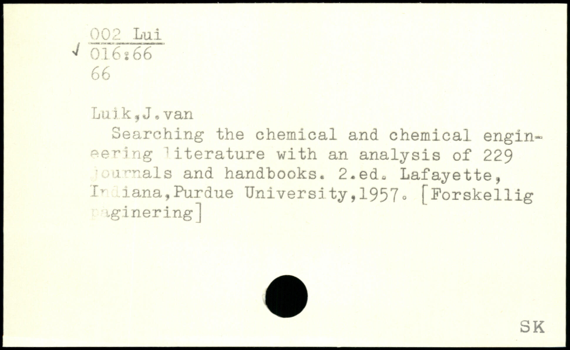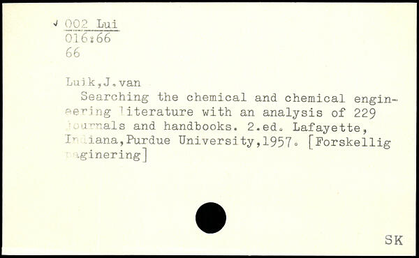 Searching the chemical and chemical engineering literature with an analysis of 229 irnals and handbooks. 2,eda