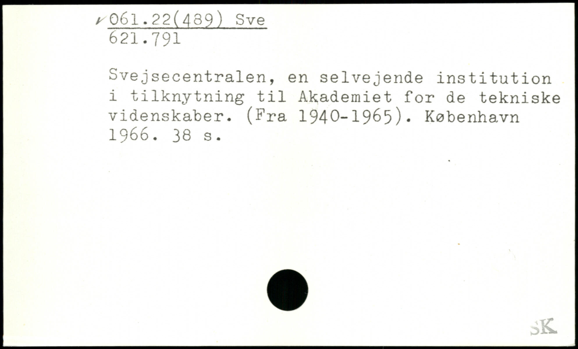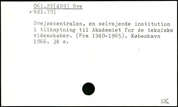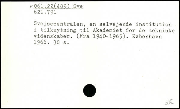 Svejsecentralen, en selvejende institution i tilknytning til Akademiet for de tekniske videnskaber. (Fra 1940-1965).