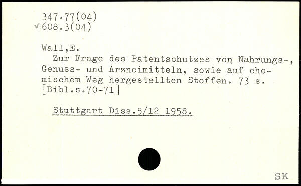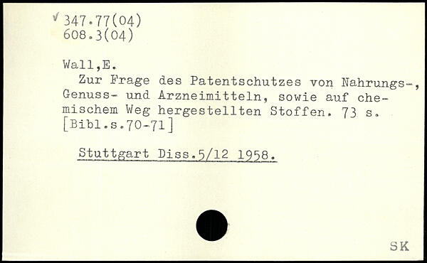 Zur Präge des Patentschutzes von Nahrungs-, Genuss- und Arzneimitteln, sowie auf chemischem Weg hergestellten Stoffen.