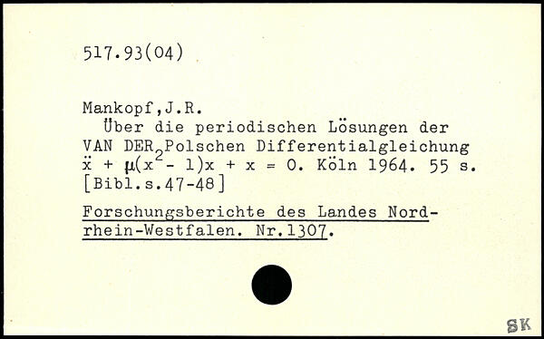 Über die periodischen Lösungen der VAN DER Polschen Differentialgleichung x + (x(x - l)x + x = 0.