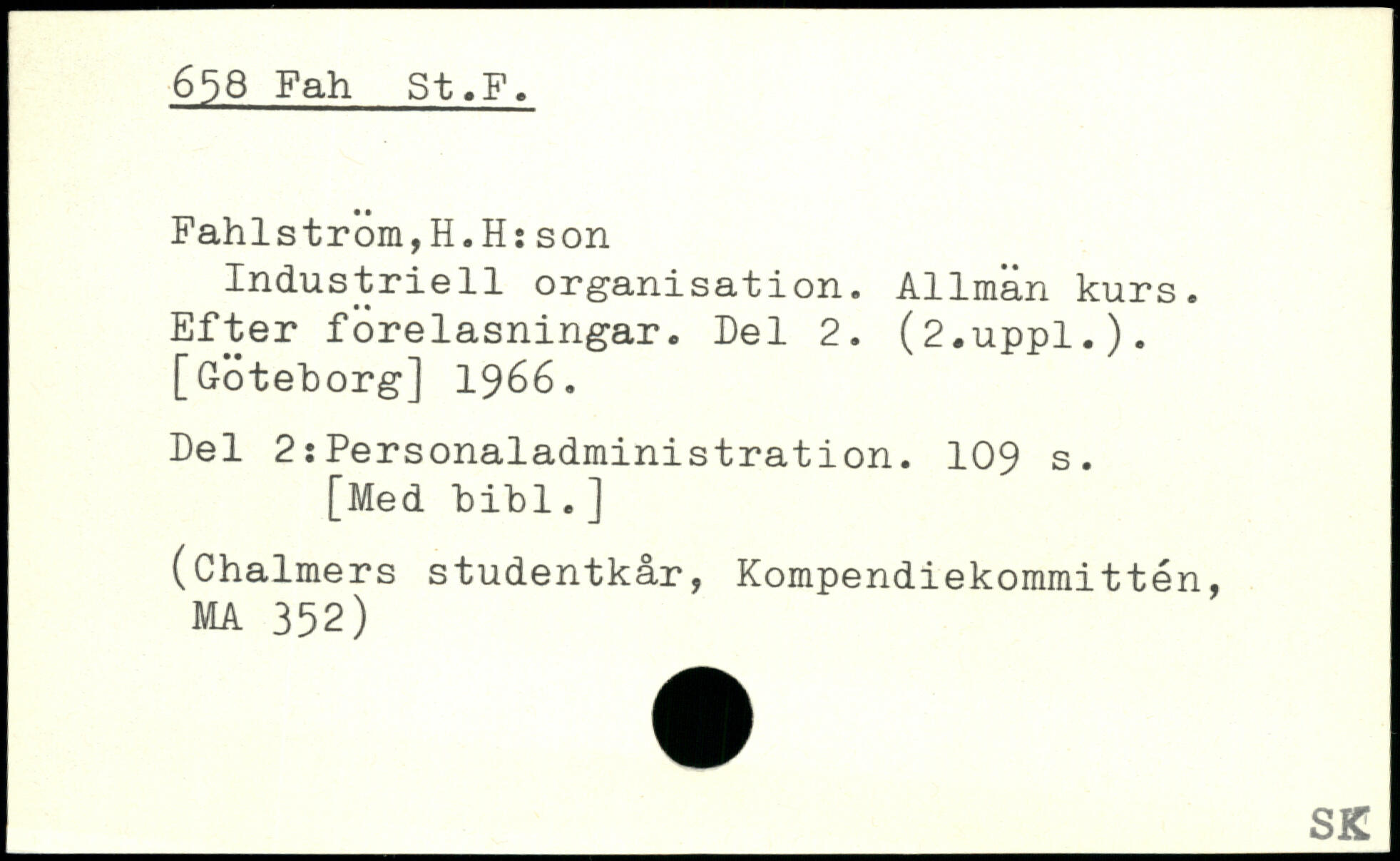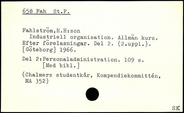 Fahlstrom,H.H:son Industriell organisation. Allmän kurs. Efter föreläsningar. Eel 2. (