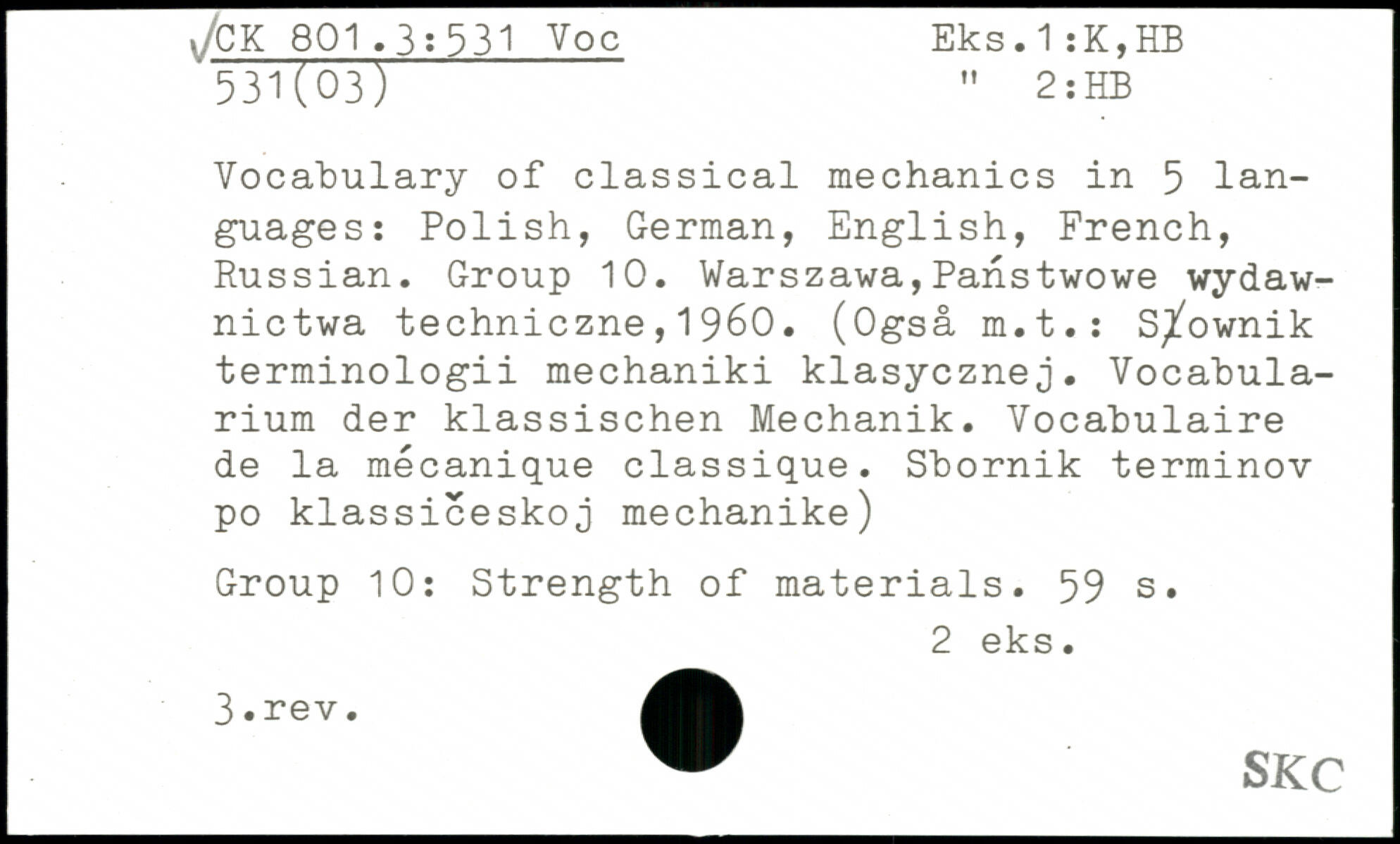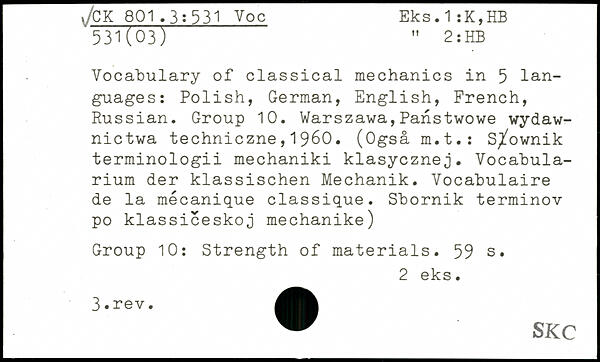 Vocabulary of classical mechanics in 5 languages: Polish, German, English, French, Russian. Group 10.