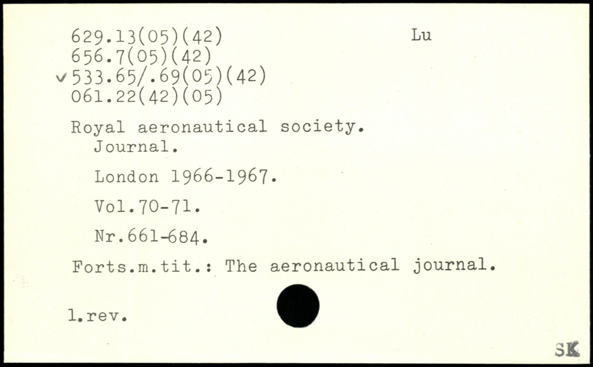 Royal aeronautical society. J ournal.