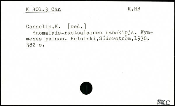 Cannelin,K. [red.] Suomalais-ruotsalainen sanakirja. Kym-menes painos.